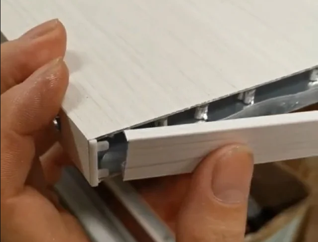 The cabinet body is made of a single welded aluminum panel, which is sturdy, durable and has strong nail-holding power. The cabinet doors are made of all-aluminum honeycomb panels, which have better texture and flatness, and the PUR edge banding is more beautiful.